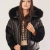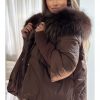 Damska zimowa kurtka puchowa z du?ym futrzanym ko?nierzem lisa Lu?na damska kurtka puchowa z kapturem