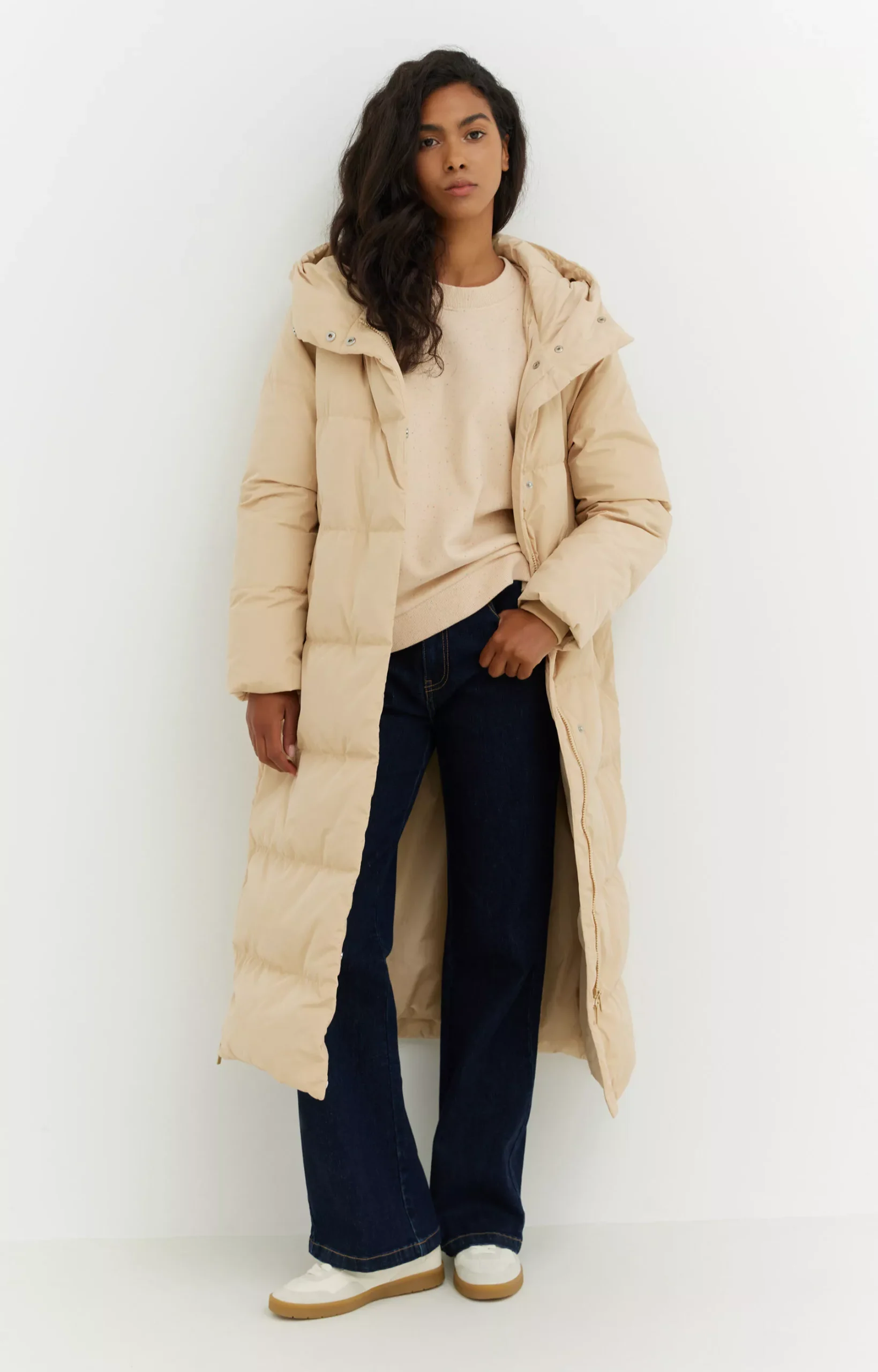 D?uga pikowana kurtka z naturalnym puchem