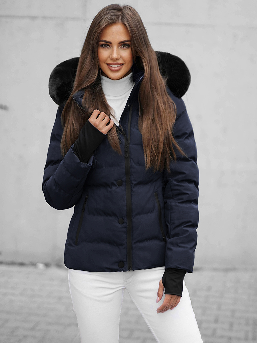 Kurtka zimowa damska z futerkiem granatowa OZONEE JS/M770/215Z | OZONEE Odzie?owy sklep internetowy