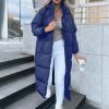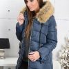 Elegancka kurtka damska puchowa z futrem jenota kolor Granatowy