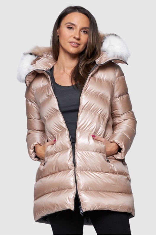 HETREGO Beige long Hygiea down jacket with foxing