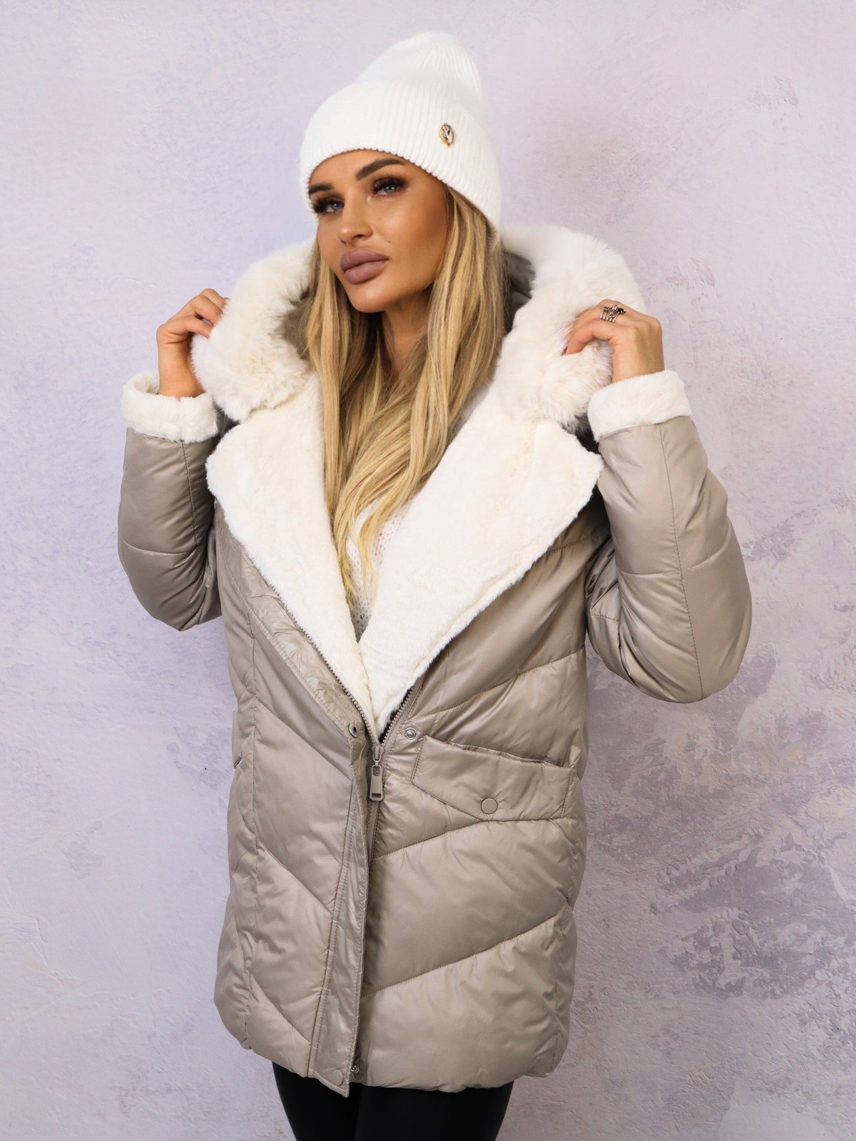 KURTKA PIKOWANA PUCHOWA Z FUTERKIEM NA R?KAWACH BE?OWA