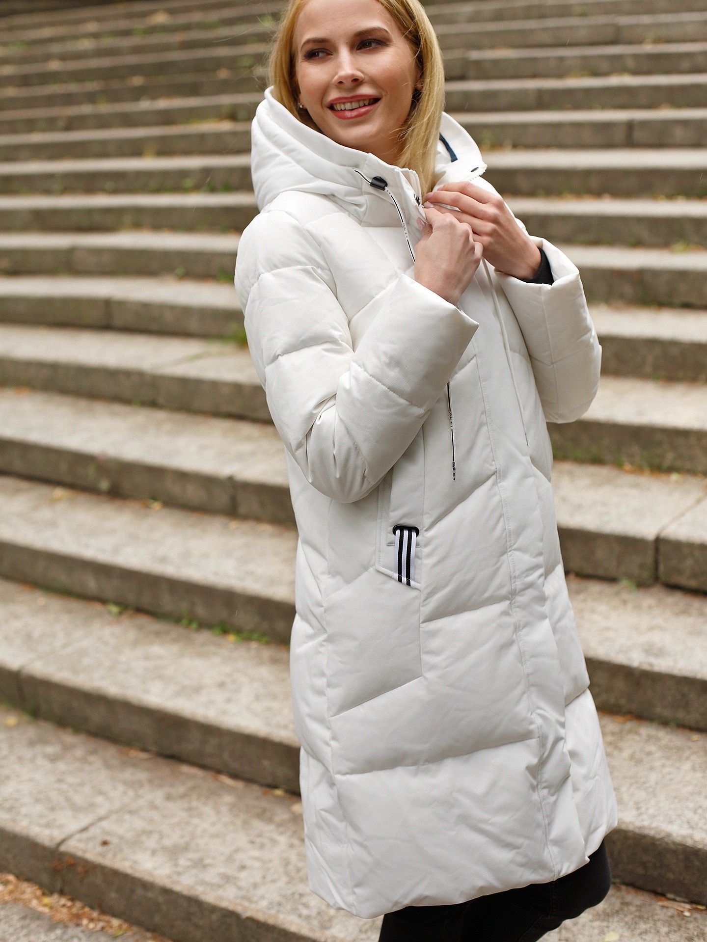 Sportowa puchowa kurtka damska z kapturem kolor Bia?y