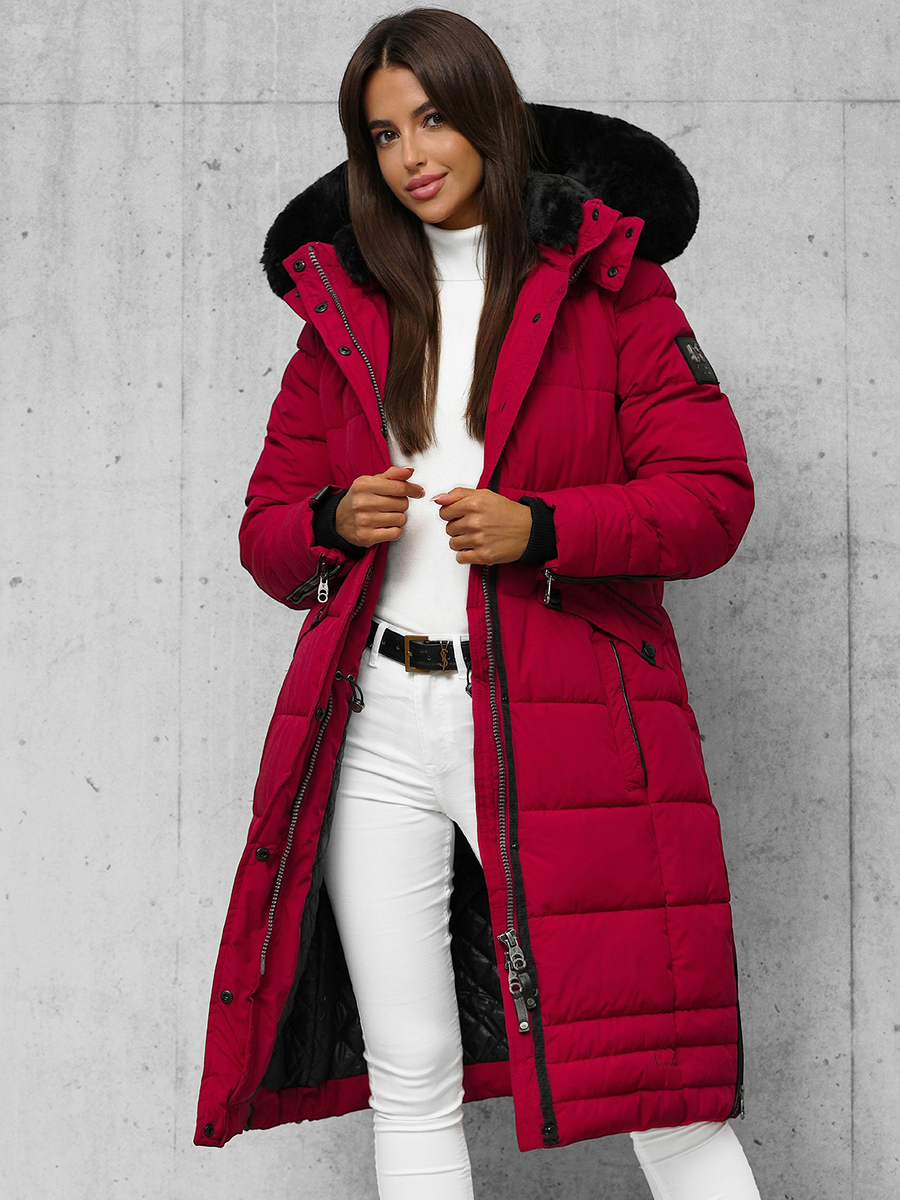 Kurtka zimowa damska d?uga pikowana ciemno czerwona OZONEE O/W377 | OZONEE Odzie?owy sklep internetowy