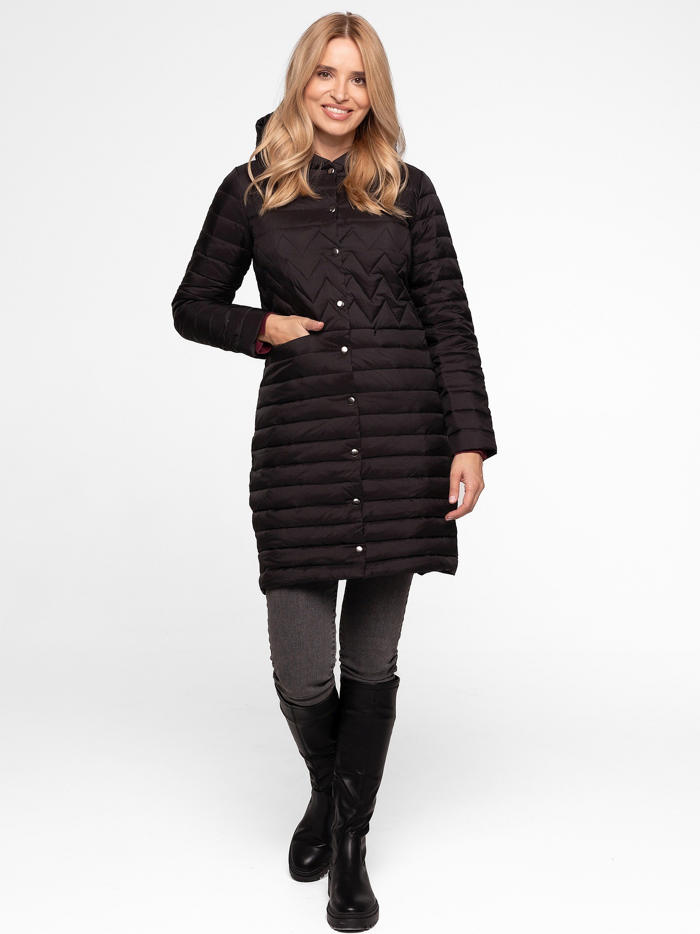 Puchowa przej?ciowa pikowana kurtka damska z kapturem kolor Czarny