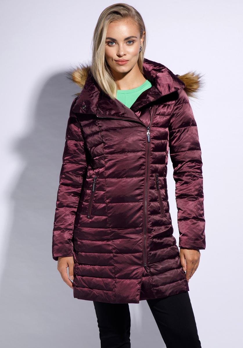 Damska kurtka puchowa z asymetrycznym zapi?ciem fioletowa L WITTCHEN | Moda Sklep