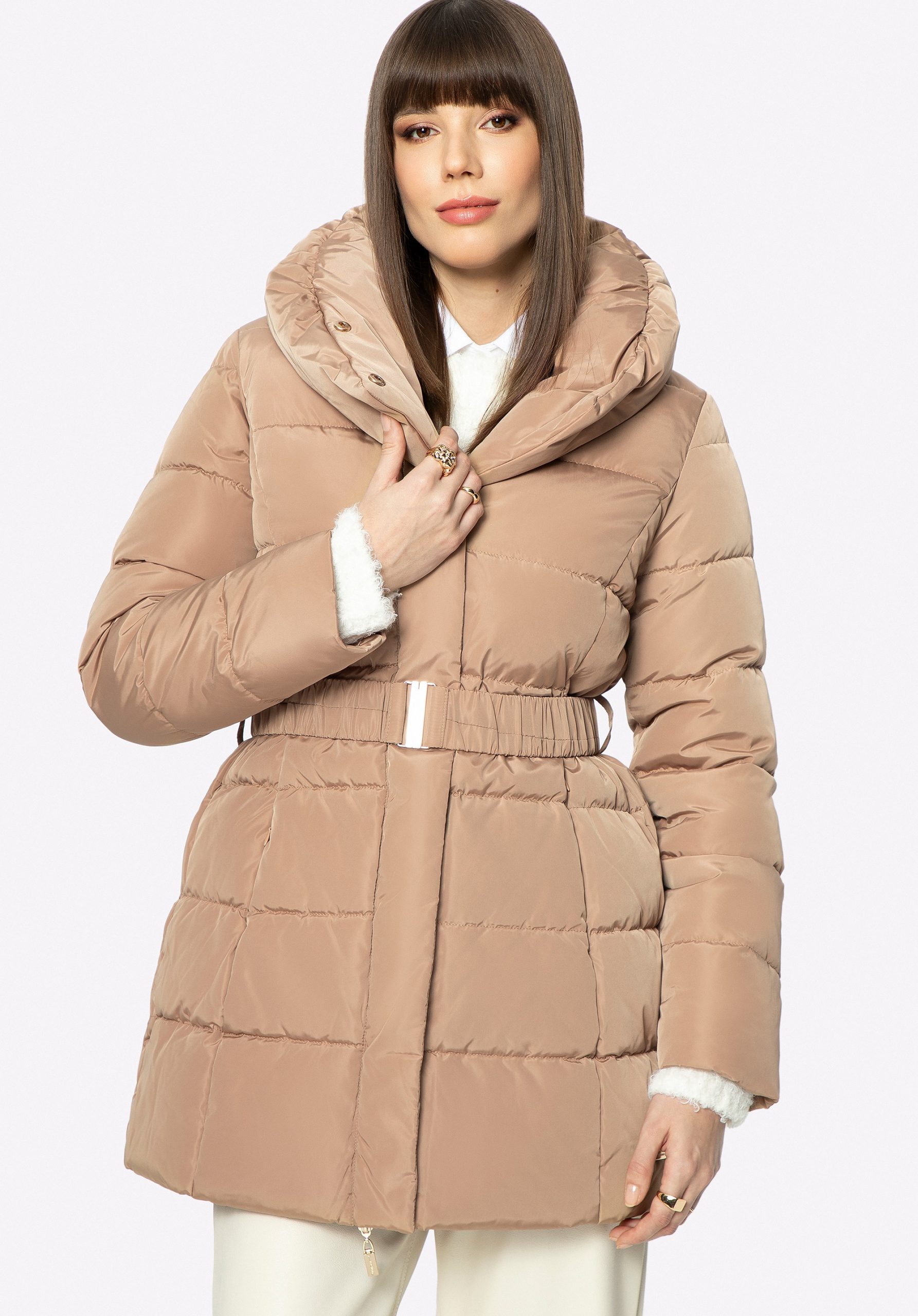 Damska kurtka puchowa z paskiem i wysokim ko?nierzem z?ota | WITTCHEN