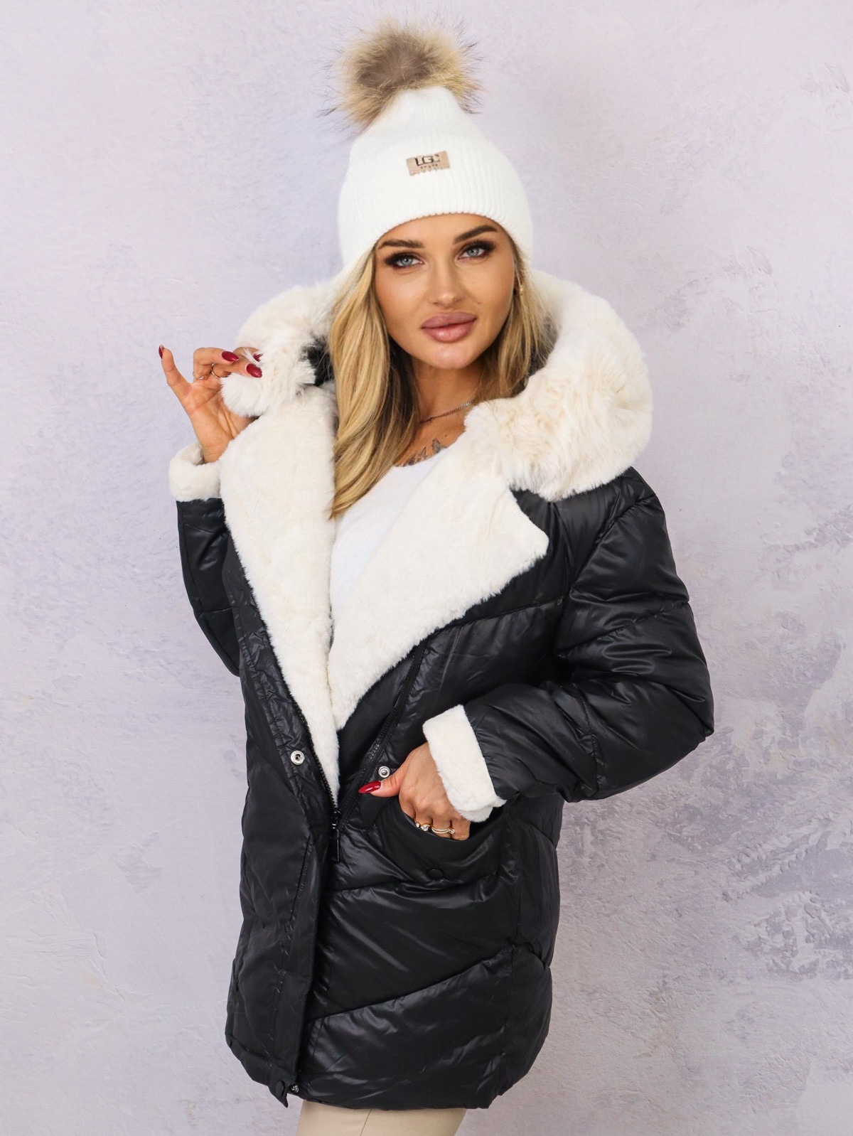 KURTKA PIKOWANA PUCHOWA Z FUTERKIEM NA R?KAWACH CZARNA