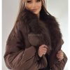 Czarna d?uga pikowana kurtka p?aszcz damska zimowa z naturalnym futrem Denley M699