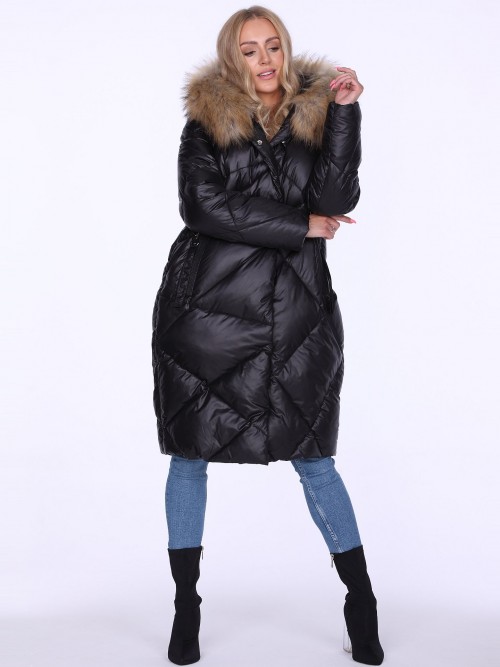 Elegancka kurtka damska puchowa z ekologicznym futrem