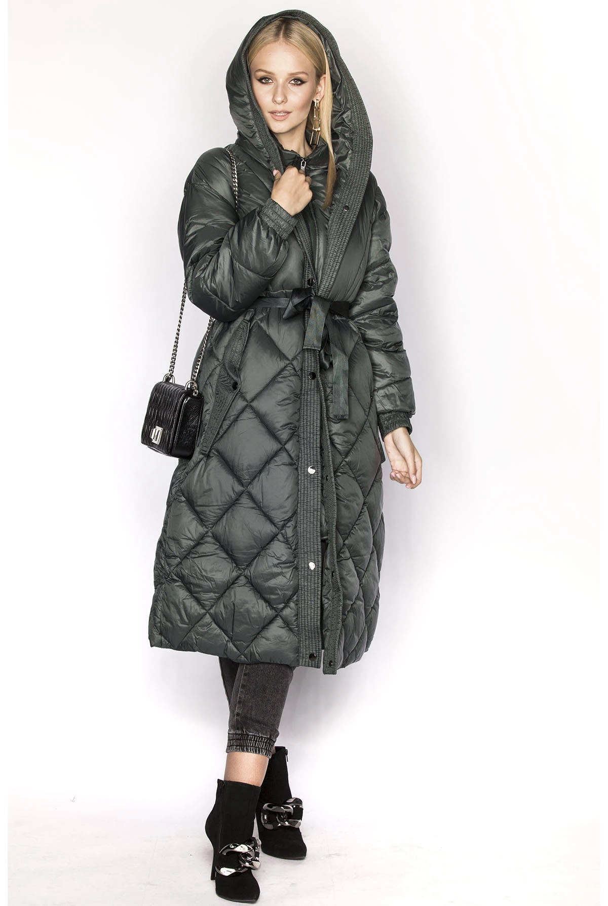 D?uga kurtka puchowa damska zielona (ag1 j9081) Ann Gissy odcienie zieleni